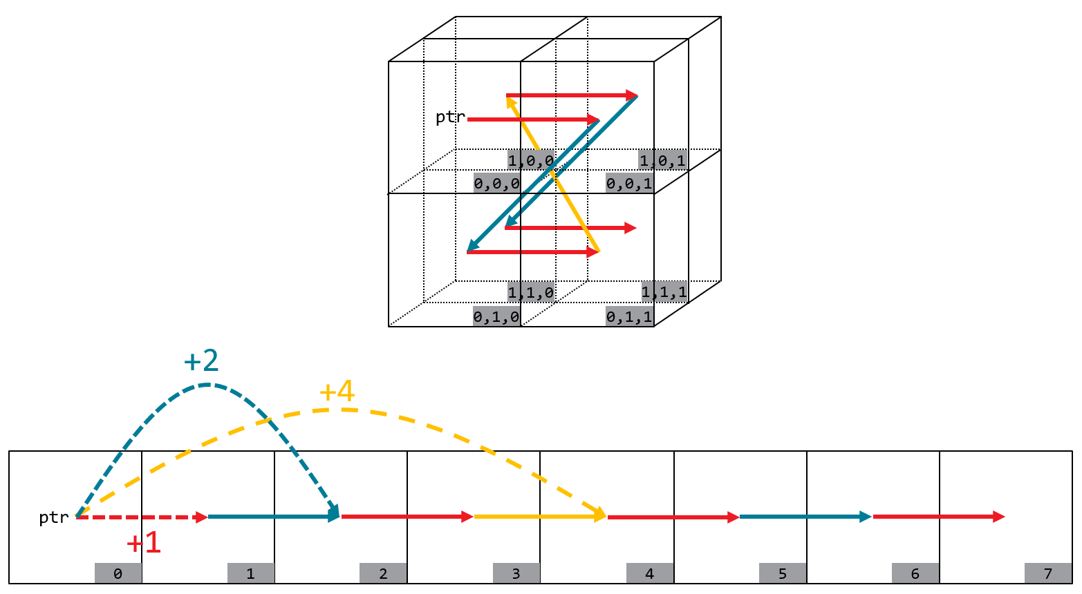 For a practical example, see GEMM leveraging multidimensional addressing.